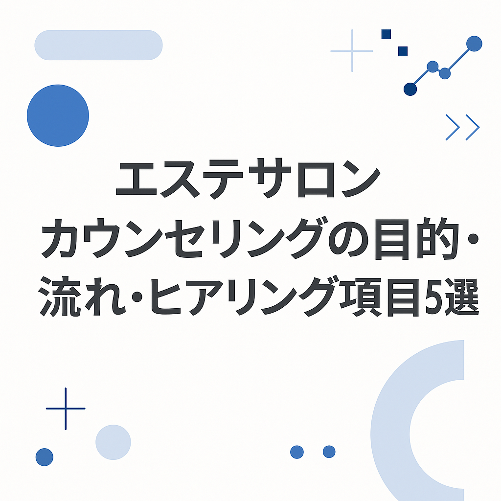 エステサロンのカウンセリングは、悩み・目的の把握、施術内容の説明、信頼関係の構築という役割を持ち、満足度やリピート率を左右する重要な工程です。プレ・イン・アフターの3段階に分けて設計し、属性・来店目的・経験・生活習慣・健康状態の5項目を確実に押さえることで、提案の精度と安全性が高まります。