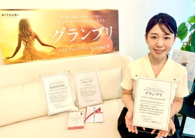 ビューティフォトコンテストのチラシを店内に貼り、「こういうコンテストがあるんですよ」と皆様にお伝えしていたんですけど、今回グランプリを受賞されたお客様はご自身で「ぜひ応募したいです!」とおっしゃってくださいました。 ご結婚がお決まりになられたばかりで、「グランプリを受賞できたら旦那さんと新婚旅行に行けるかも!」と、すごく楽しみにエントリーしてくださいましたので、この結果は本当に喜ばれると思います。