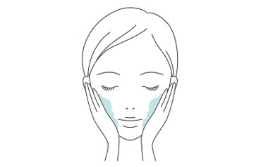 セラム規定量を手のひらに落とし、顔全体に押さえ込むようにハンドプレスしていきます。3〜5分間置き、浸透させます。