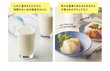 ドリンクとしてだけでなく、冷製スープとしても、 固めてプリンやお豆腐のようにも食べられます。